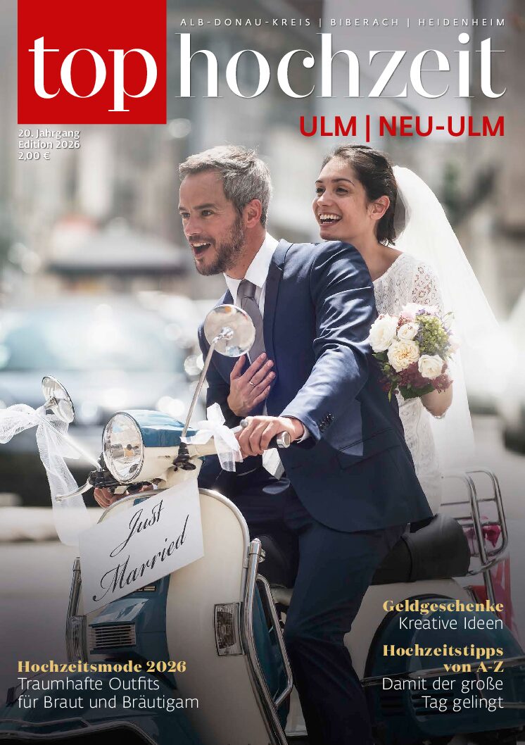 Das aktuelle TOP Hochzeitsmagazin Ulm erhaltet Ihr jetzt wieder an vielen Stellen in der Region Ulm/Neu-Ulm/Biberach … oder direkt beim Verlag. Wir wünschen allen Brautpaaren viel Spaß bei der Hochzeitsplanung und -vorbereitung und eine wunderbare Hochzeit.